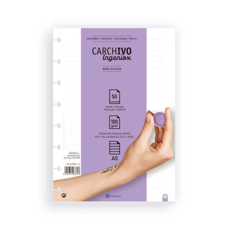 BLOCO RECARGA A5 100gr. 50FLS PAUTADO - P/ CADERNO INTELIGENTE INGENIOX