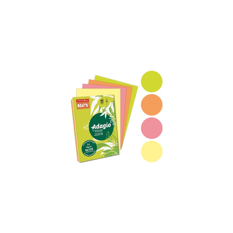 RESMA PAPEL FOTOCOPIA ADAGIO A4 80GR. 4x125FLS CORES FLUORESCENTES