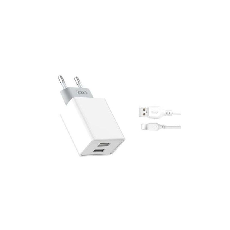 CARREGADOR P/ SMARTPHONE XO 2xUSB-A 2.4A C/ CABO LIGHTNING 1MT BRANCO