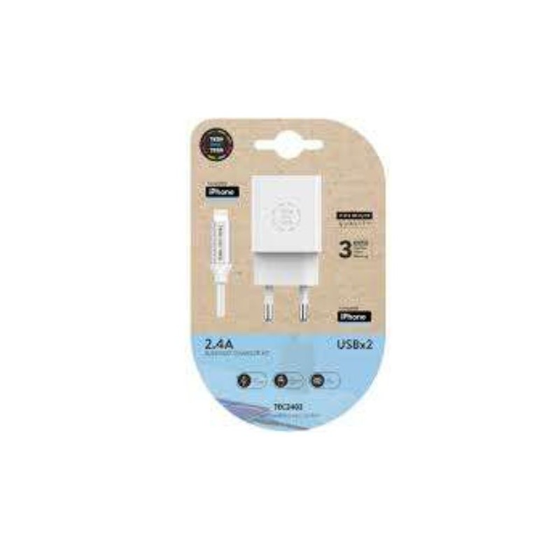 CARREGADOR P/ SMARTPHONE TECH ONE TECH 2xUSB-A 2.4A C/ CABO LIGHTNING 1MT NYLON