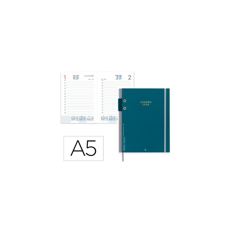 AGENDA ENCADERNADA DIARIA 2026 A5 PAXOS C/ ELASTICO AZUL