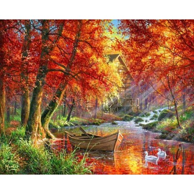 PINTAR POR NUMEROS FIGURED'ART C/MOLDURA 40X50CM RIO E BARCO NO OUTONO