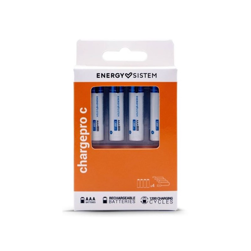 BLISTER C/ 4 x PILHA RECARREGAVEL (USB-C) ENERGY SISTEM HR03 AAA 740mAh 1.5V